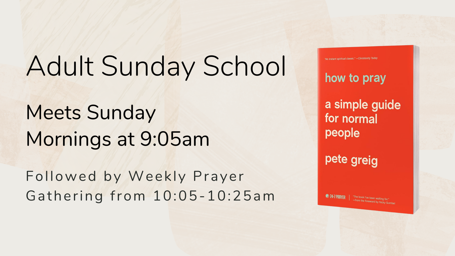 Join us on Sunday mornings for NaperCov’s Adult Sunday School, which is currently exploring prayer using the book How to Pray: A Simple Guide for Normal People by Pete Greig. This Sunday, they will be coving the chapter entitled Step 3: Ask.