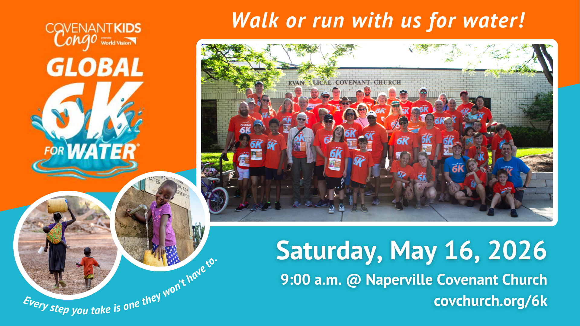 Save the date for the annual Global 6K for Water! We will once again be hosting this fun event to raise funds for our partner organization, Covenant Kids Congo. To register for this event, visit our church’s Global 6K team page by clicking here. If you have any further questions, contact Steve Offutt at stephen.w.offutt@gmail.com