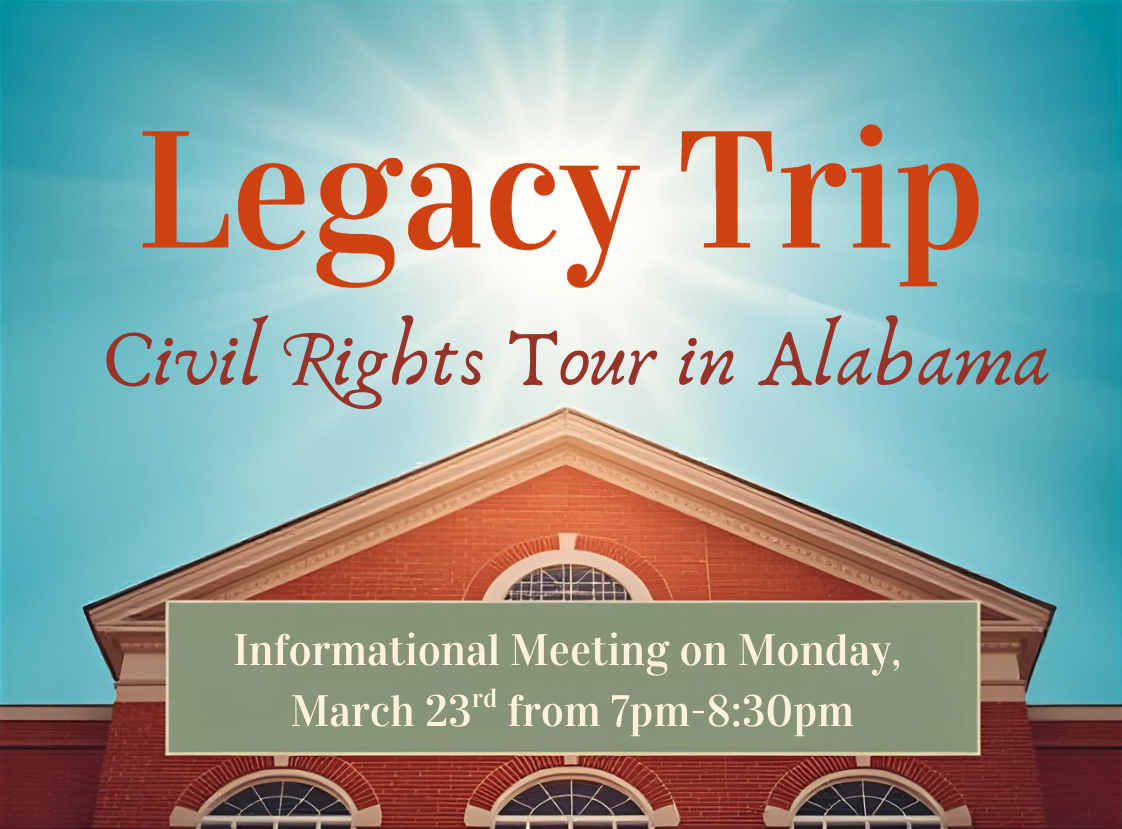 The next informational meeting for the Legacy Trip will take place on Monday, March 23rd at 7pm. You can read general information about the Legacy Trip by clicking here, as well as a recap of their first informational meeting by clicking here.